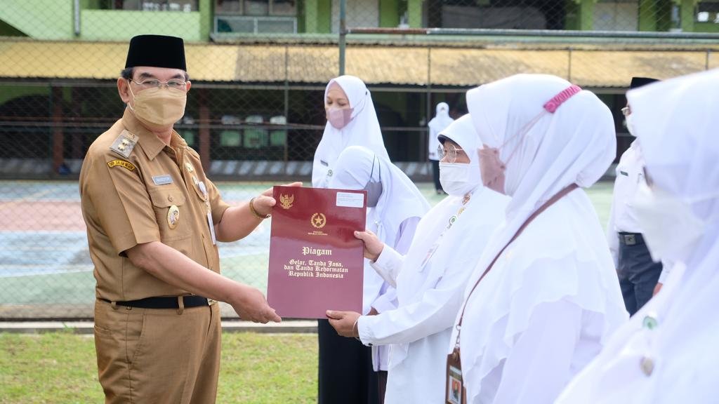 Acara dilanjutkan dengan penyerahkan penghargaan Satya Lencana Karya Satya 30 tahun, 20 tahun dan 10 tahun kepada PNS Kementerian Agama Kota Magelang, dan penyerahan Piagam Penghargaan Cipta Lagu Layanan Kementerian Agama. (*/cr1)