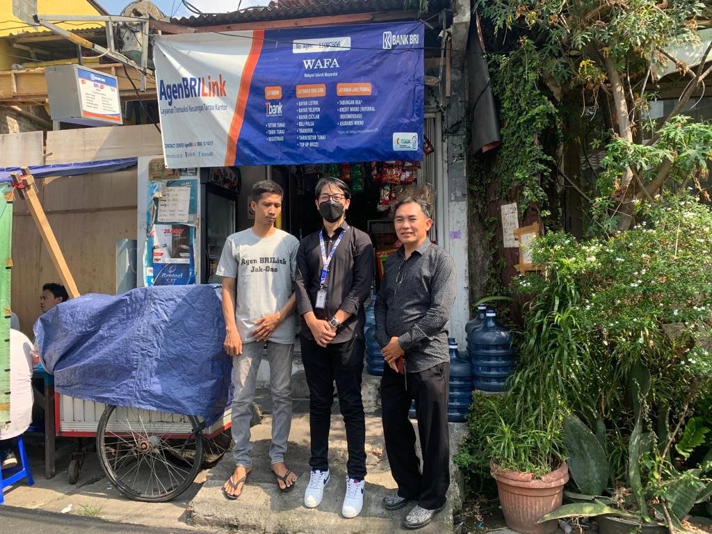 Di tempat ini ada layanan BRILink yang dikelola oleh pedagang kelontong Wahyudin. Namanya Agen Wafa, di Jalan Kebon Sirih RT 014/RW 02, Jakarta Pusat. Wafa, nama anaknya yang kedua untuk diabadikan menjadi nama agen BRILink.