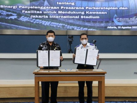 Pemerintah Provinsi DKI Jakarta dengan Direktorat Jenderal (Dirjen) Perkeretapian Kementerian Perhubungan Republik Indonesia, Kamis (18/8), menandatangani Memorandum of Understanding (Mou) tentang sinergi penyelenggaraan prasarana perkeretapian dan fasilitas untuk mendukung kawasan Jakarta International Stadium (JIS).