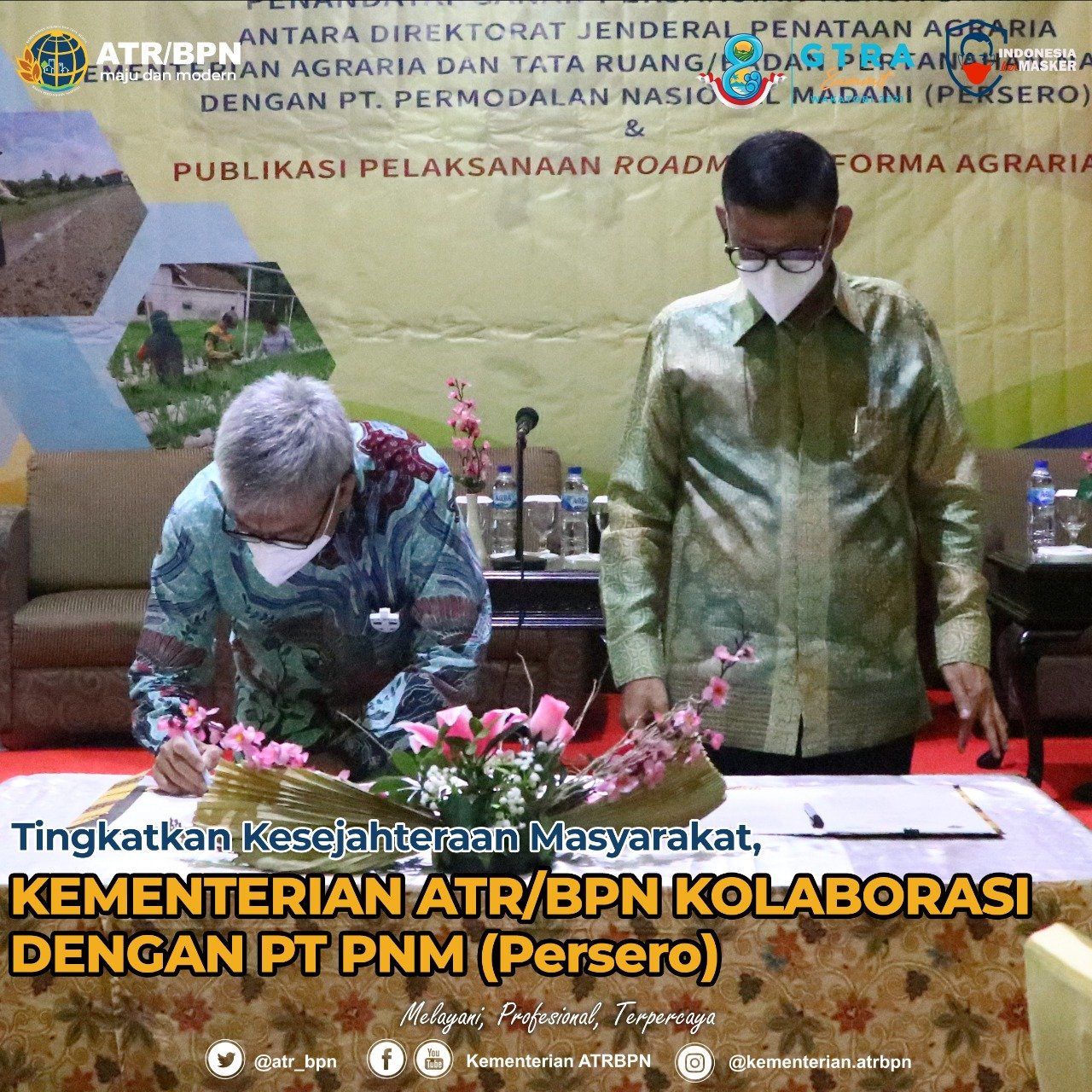 Guna menindaklanjuti nota kesepahaman tersebut, Direktorat Jenderal (Ditjen) Penataan Agraria menandatangani Perjanjian Kerja Sama (PKS) dengan PT PNM (Persero) di Hotel Sari Pacific, Senin (31/05/2021).
